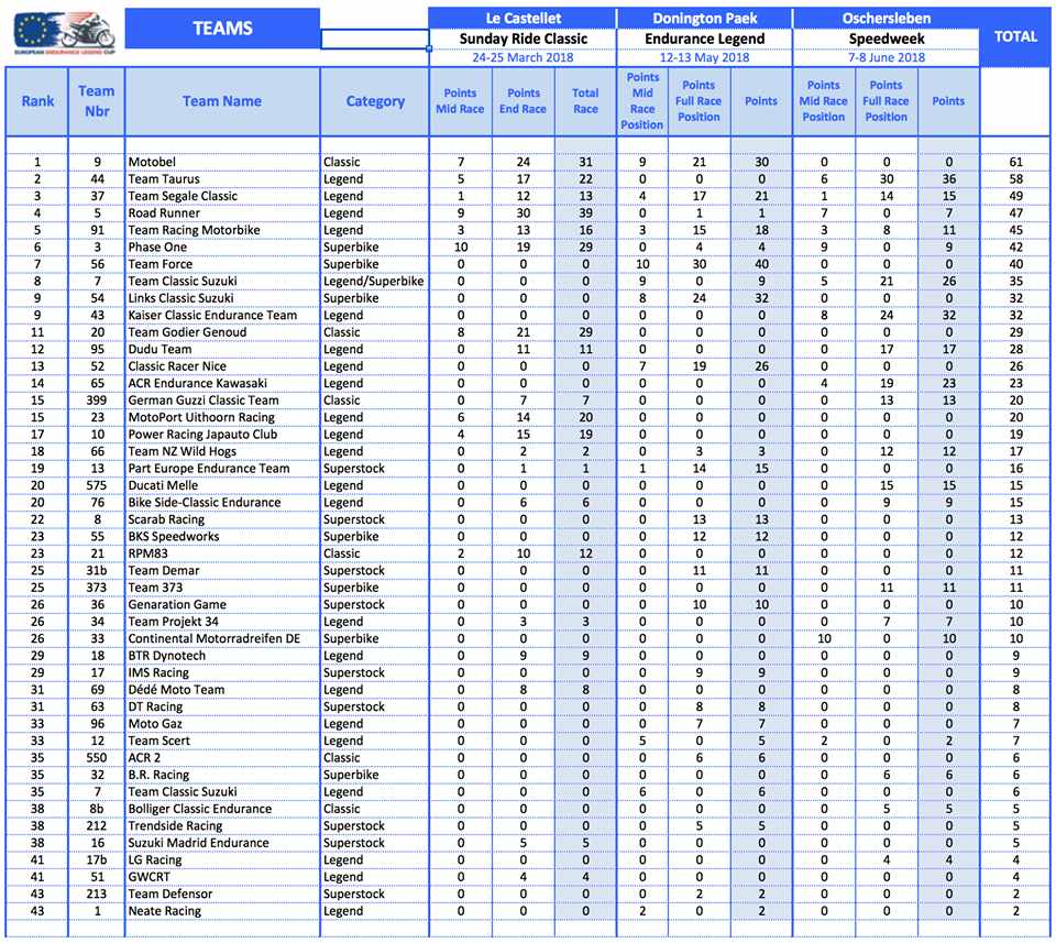 Après la 3ème manche de l' European Endurance Legend Cup à Oschersleben,